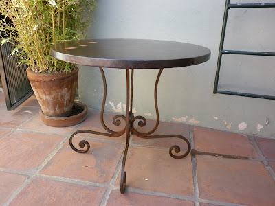 I like the clean copper top in a dark finish as opposed to the hammered look. It's obviously cleaner but it also has elegance and sophistication. The flower base is a rustic rust finish made from iron.